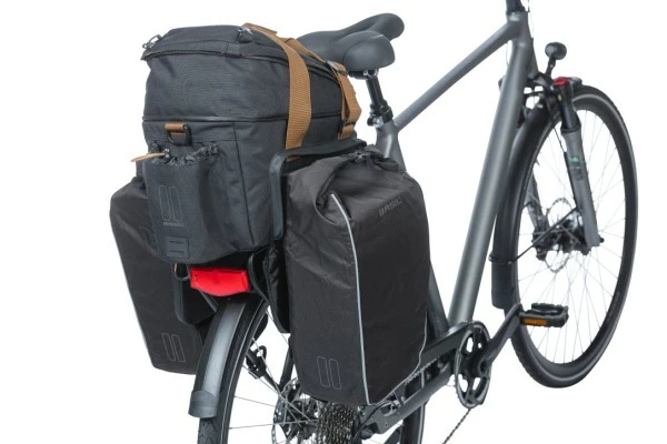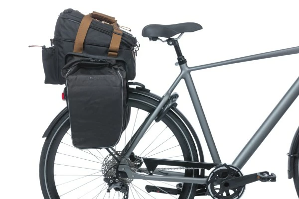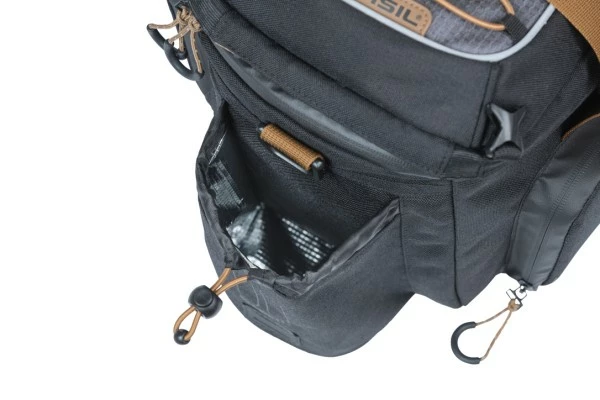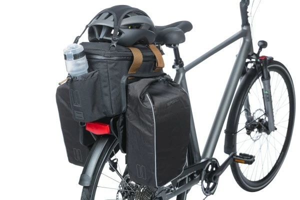Stilren, gennemført og rummelig cykeltaske fra Basil til bagagebæren.