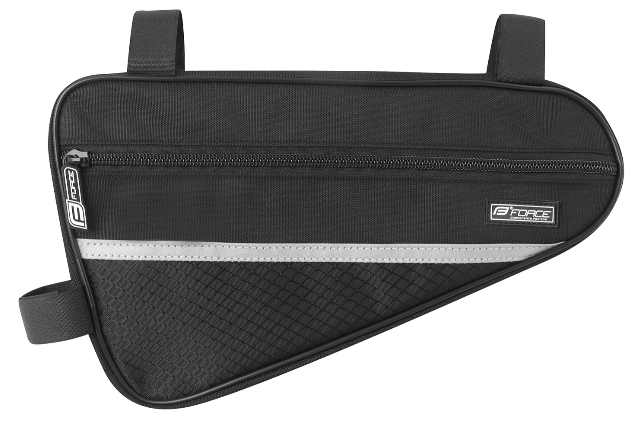 Tasken fastgøres til stellet med velcrostropper på overrør og sadelrør.