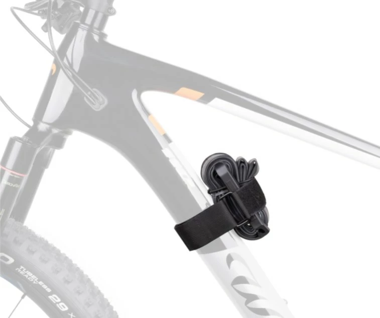 Stroppen er smart lavet med gummi inderside, så den kan sidde mange steder på cyklen som stel, overrør og sadel.