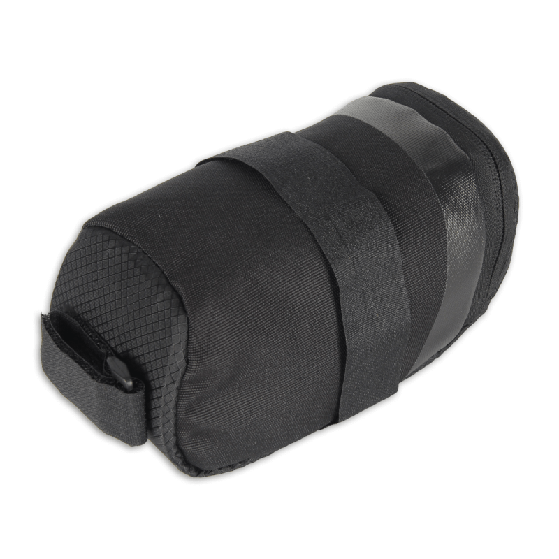 Monteres med kraftige velkro stopper på sadel bøjlerne og sadelpinden og er derfor også ideel til MTB hvor man ellers kunne knække et plastikbeslag.