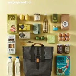 Tasken er lavet i et 100% vandtæt materiale med en lynlås indvendigt samt velcro på toppen.