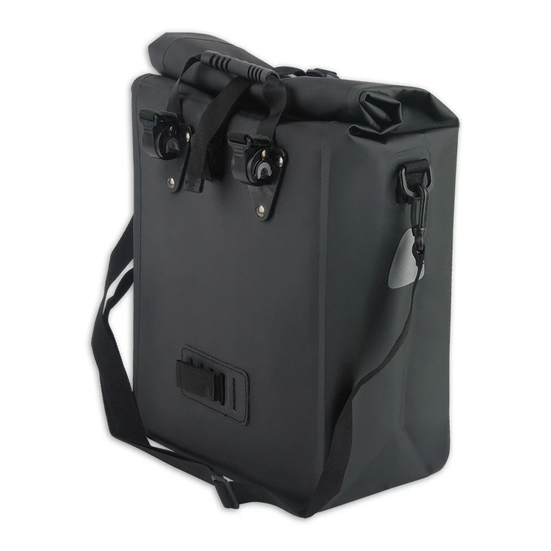 Tasken er lavet i en ekstra stor størrelse og er lavet til også at kunne passe på e-bikes med batteri på bagagebærer, takket være en quick mount beslag til den.