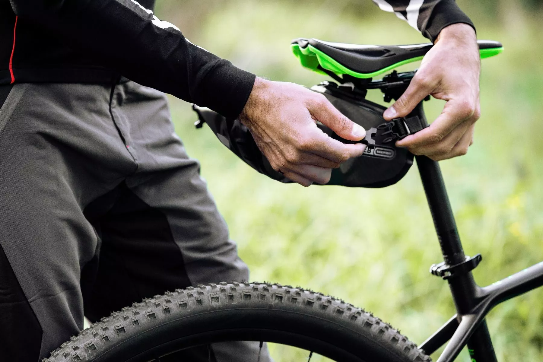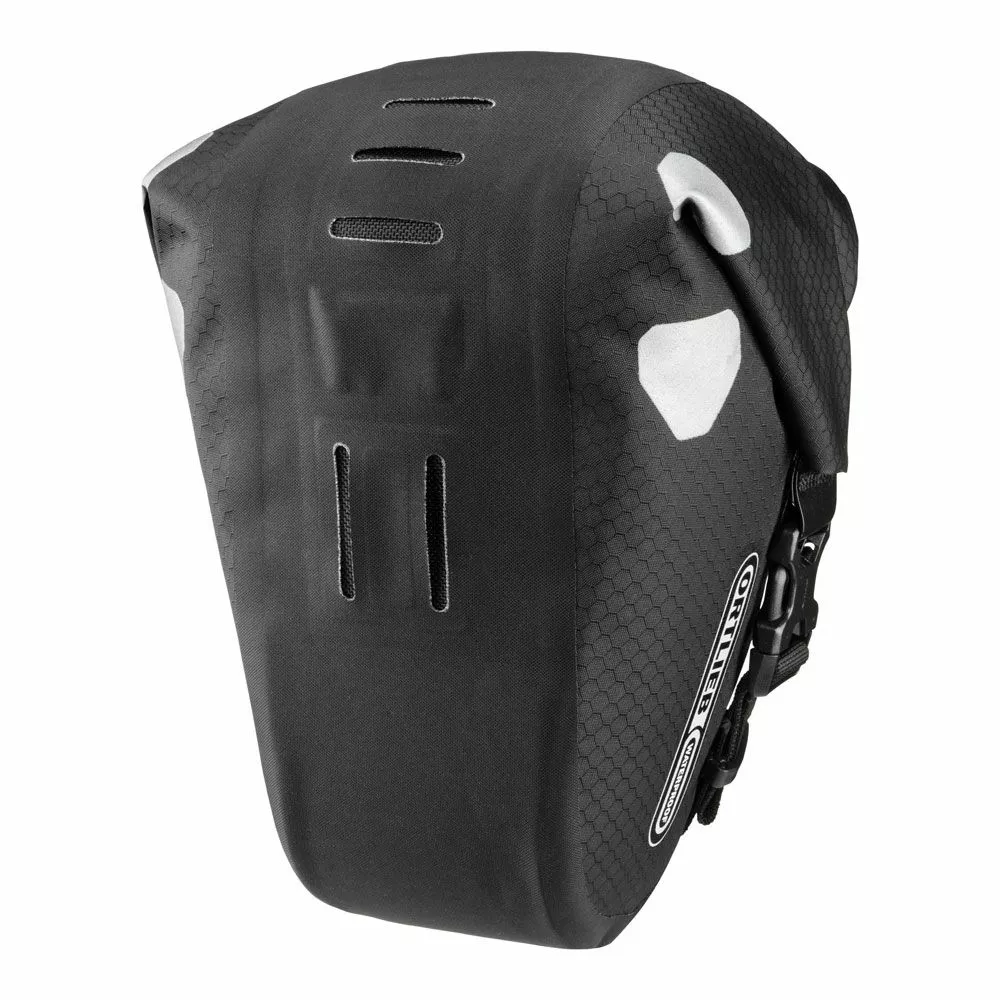 Saddle-bag two tasken fra Ortlieb giver et brugbart og lækkert system til at opbevare et vælg af ting under sadlen på cyklen.