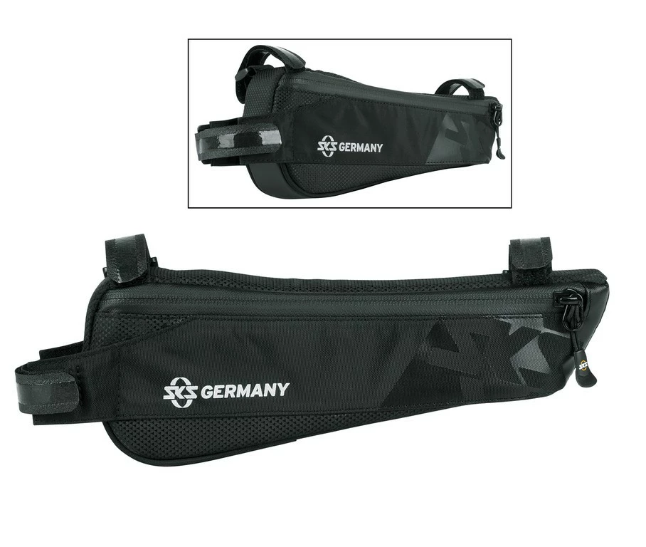 Cykeltaske til montering under overørret og i læ af kronrørret, for optimal aerodynamik.