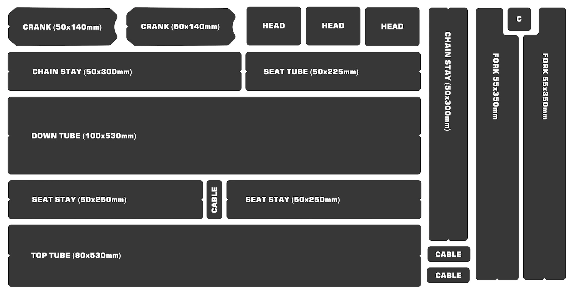 Kittet beskytter overrør, kædestag, skrårør, sadelrør, bagstager, forgaffel, pedalarme samt kronrør omkring kablerne.