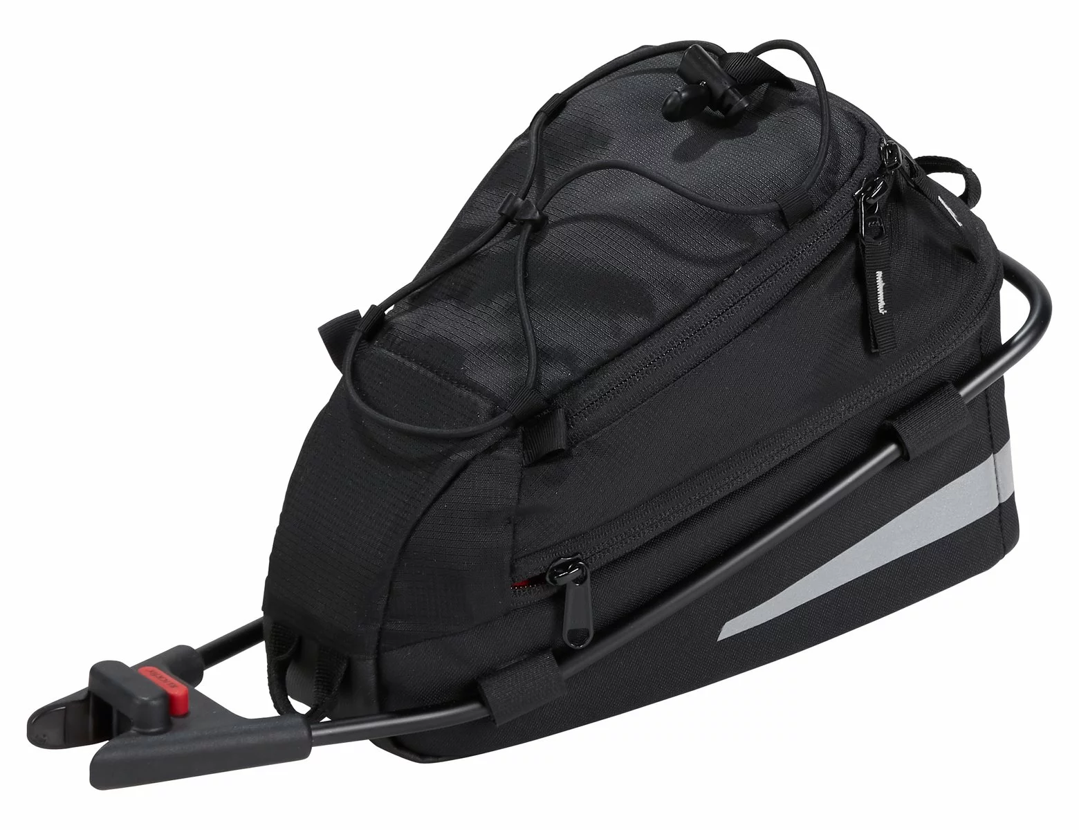 Ovenpå tasken er der elastik, så du kan have ekstra bagage med, mens der på bagsiden og siderne er der reflekser for højere synlighed.